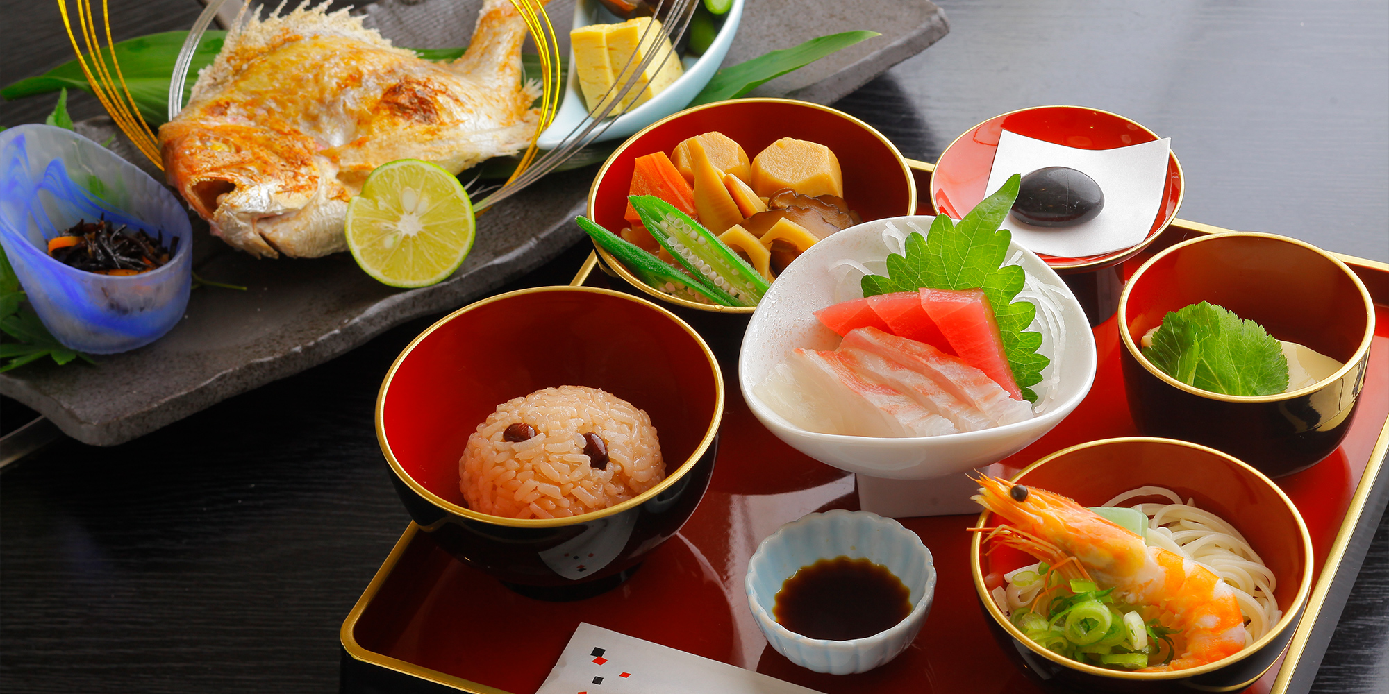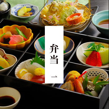 地元の季節の食材や三河湾の海の幸を盛り込んだ弁当、丼物、御膳、仕出し料理又は創業50年継ぎ足しタレで焼きあげる一色産うなぎ料理、奥三河産使用の自然薯料理、碧信産三州あおみ豚使用のカツ御膳など幅広くご用意しております。